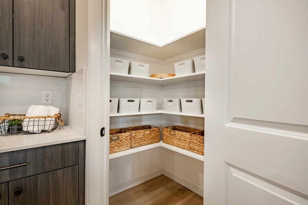 A well-designed pantry should prioritise visibility and access. Full-height units with internal drawers or pull-out systems allow dry goods to be seen at a glance rather than hidden at the back of deep shelves. Adjustable shelving accommodates bulk staples without stacking, and frequently used items can be positioned between shoulder and hip height to reduce stretching or bending.